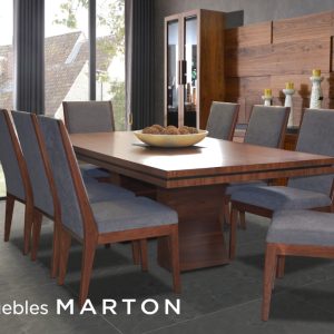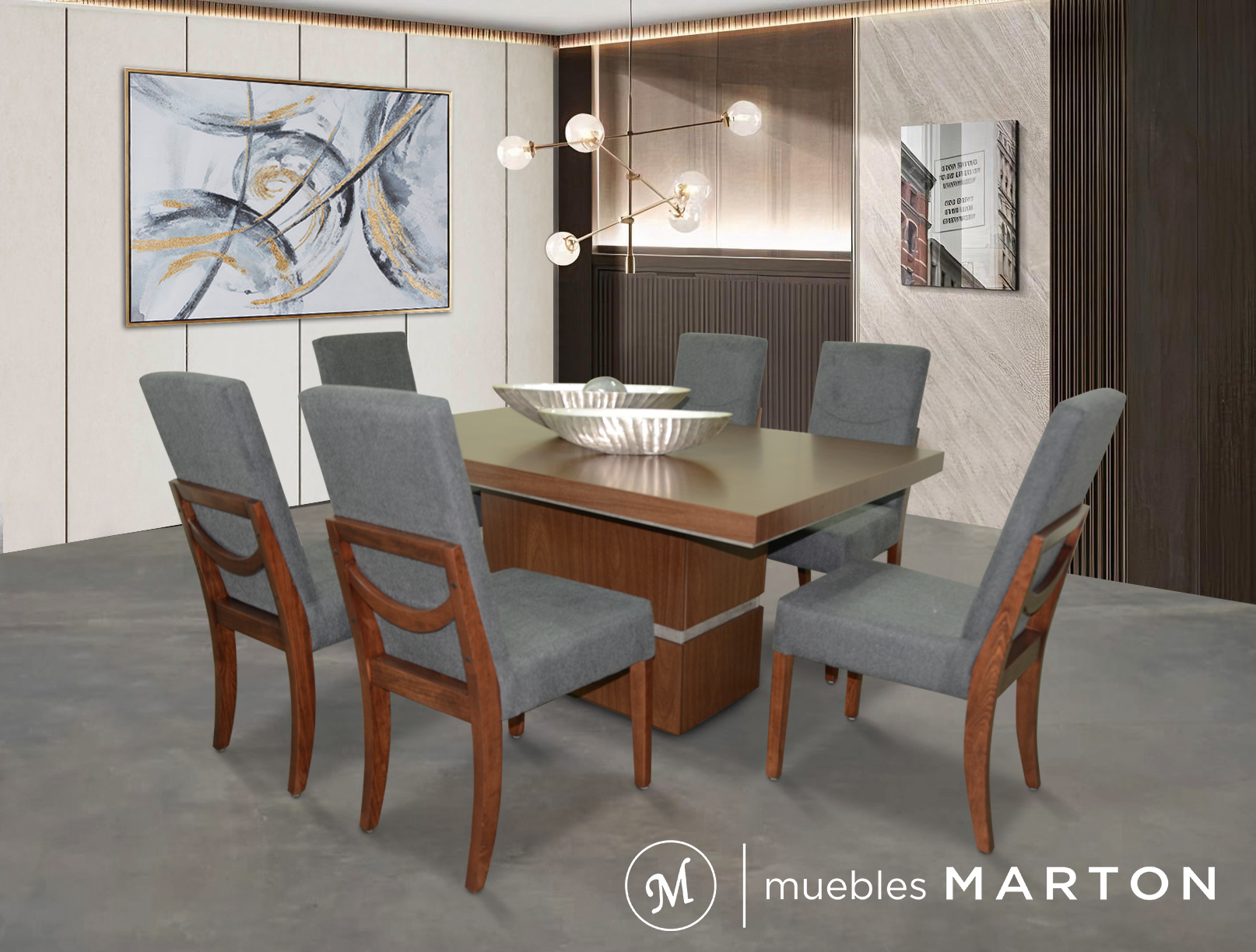 Set de comedor incluye mesa de 1.60m x 1m y 6 sillas tapizadas en tela de alta resistencia color gris